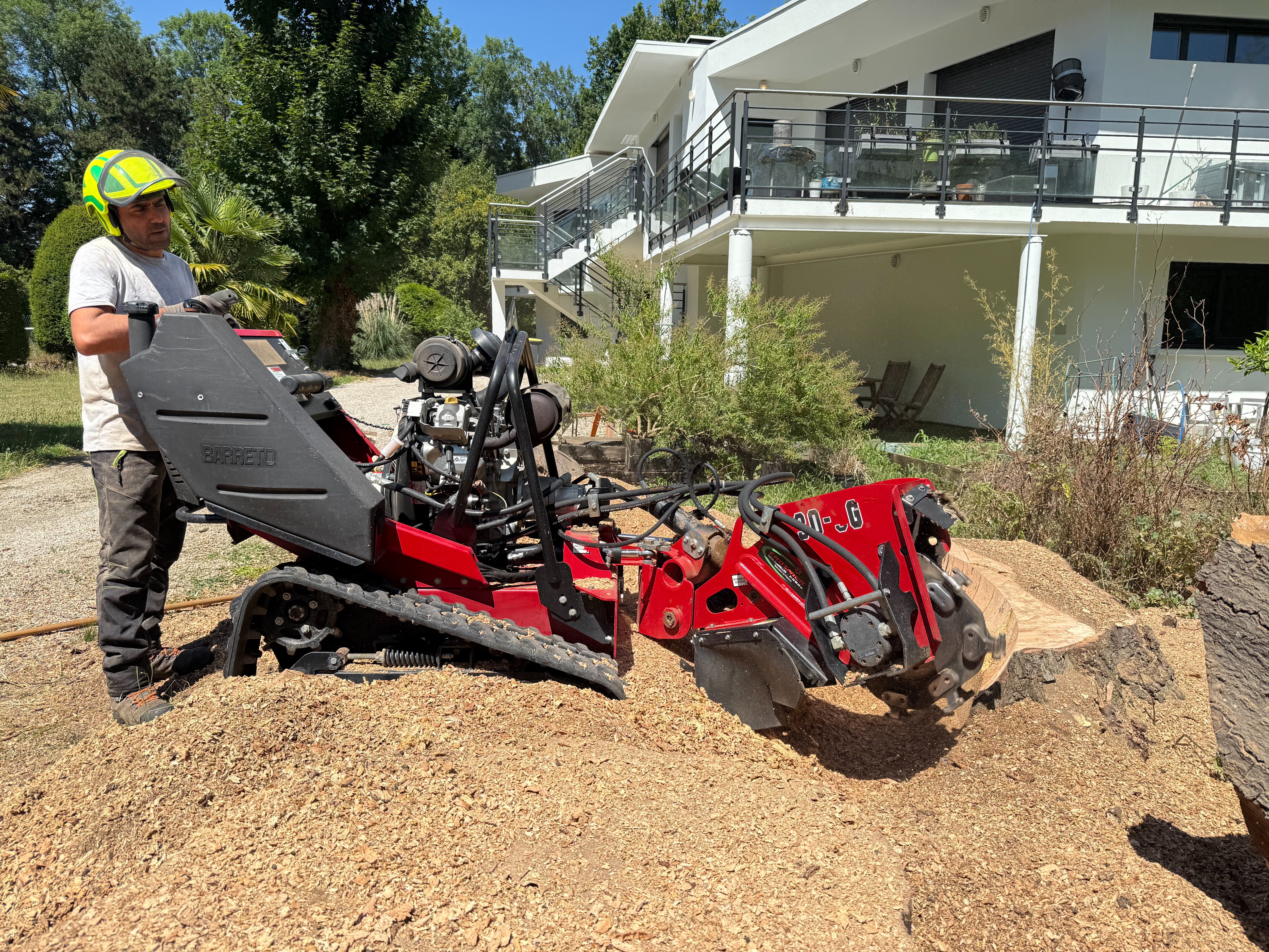 Après abattage, la souche laissée en place peut occasionner des repousses indésirables, une gêne racinaire, obstacle…